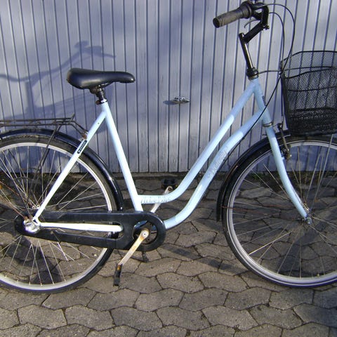 alustel , 28" hjul , stel 52 cm , 1 fodbremse 1 håndbremse , med kurv , bagagebære , støtteben , ringeklokke , reflekser , gode dæk , i god og køreklar stand kan afprøves , god kørestilling lav indstigning