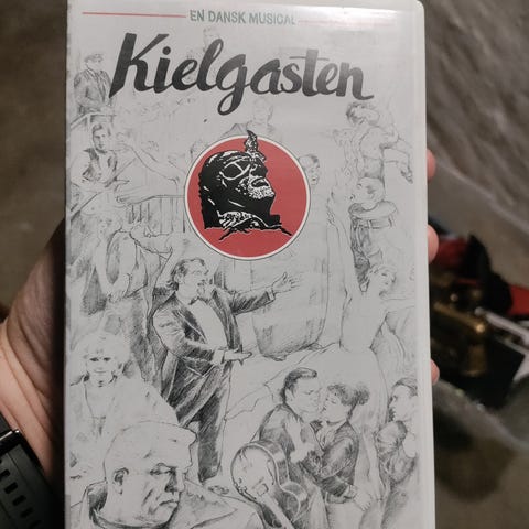 Kielgasten VHS videobånd. VHS-format, musical med Kim Larsen rollebesætning med blandt andre Tom Langesen, Erik Clausen, Jørn Hjorting, Lene Stystesen, Jonna Høyball, Allan Olsen m.fl. Sjælden Kan hentes i Risskov eller sendes sælges billigt