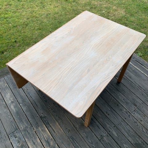 Mahogeni stel med tilspidsede ben har haft et lille hak på det ene ben og er blevet slebet