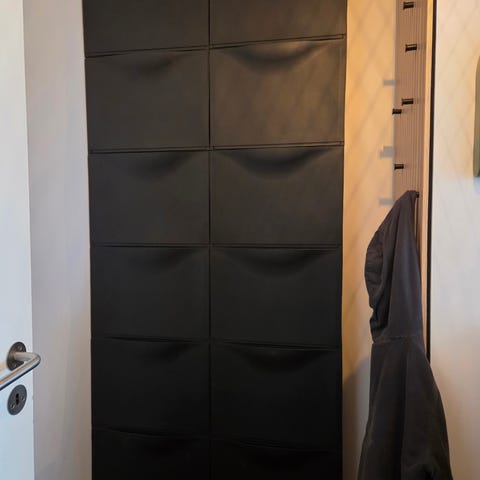 Hvert skoskab har 4 opbevaringsrum til sko/korte støvler. Hænger perfekt i en smal gang.