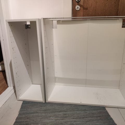 Kan evt hænges horisontalt som skænk eller vertikalt som vitrineskab, og så få pynte sider på for en flot finish