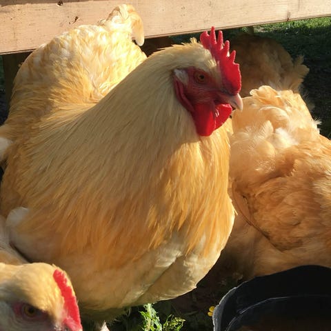Brahma Mix ( en del hvid guldrandet høner i flokken ) stor race