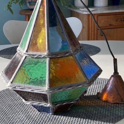 Lampens detaljer og patina vidner om alder og kvalitet, og den fungerer stadig, som den skal.