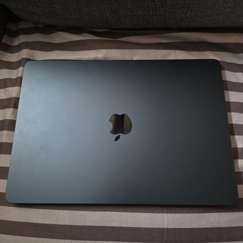 Sælger Macbook air 15'6 M2 2023 model med 8GB og 256GB plads, sammen med airpods max høretelefoner.