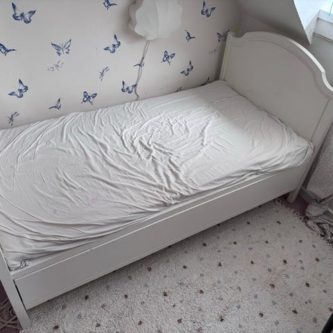 Madras medfølger ikke. Den ene sengegavl har været slebet (se foto)