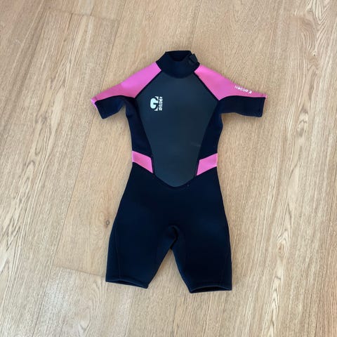 G-Force 2 våddragt til børn i sort og pink. Dragten er langbenet med lange ærmer og lynlås i ryggen. Egnet til brug ved vandaktiviteter som strand, leg i vandkanten og begyndersurfing, hvor der er behov for ekstra varme og beskyttelse i vandet.