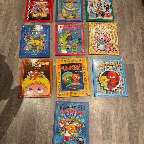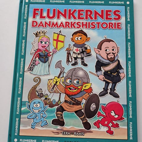 Flunkerne Danmarks historie bog. Illustreret børnebog om Danmarks historie udgivet af Carlsen. Hardback-udgave med farverige tegninger af flunkerne, der præsenterer historiske perioder og begivenheder i Danmark. Velegnet som højtlæsningsbog eller til selvstændig læsning for børn.