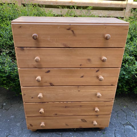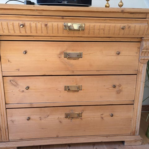 Ældre kommode fyrretræ, højde 66, bredde 117, dybde 57