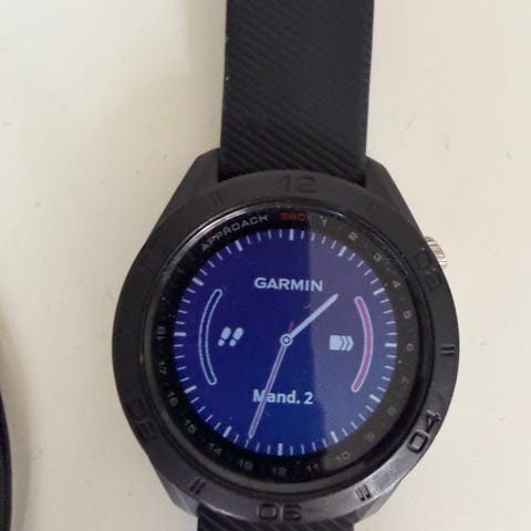 Garmin Approach. Uret har rund urskive og sort silikonerem med justerbar lukning. Det leveres med opladerkabel med USB-tilslutning samt brugervejledning. Velegnet som golfur hvor man kan se alle bane.