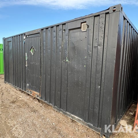 Hvid stålcontainer egnet til opbevaring. Ydersiden fremstår med brugsspor og misfarvninger. Velegnet som ekstra lagerplads eller til midlertidig opbevaring på byggeplads, gårdsplads eller lignende. Konstruktionen er i metal med låsbare døre på enden.