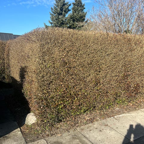 9 m Liguster hæk klippet ned i efteråret gives væk mod at den bliver gravet op.