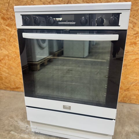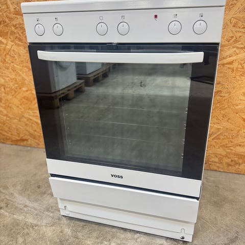 Brugt induktionskomfur med 24 mdr. garanti: brugt Voss induktionskomfur i hvidt med stor ovn på 74 ltr. Nydeligt komfur med få brugsspor. Bemærk: Enkelte brugsridser på kogeplader. Du er altid velkommen til at besigtige produktet på vores lager i Glostrup inden køb