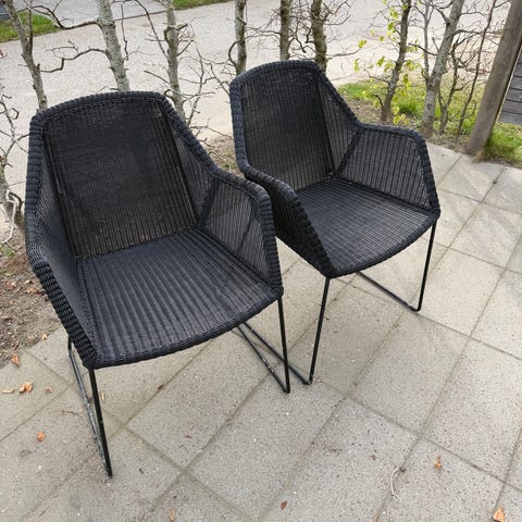 Stolene har kurvet ryg og sæde i flettet materiale, og utrolig dejlige at sidde i.