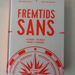 Fremtidssans bog. Dansk faglitterær udgivelse med undertitlen "Ny viden – nye regler – manual til fremtiden". Trykt i hardback med hvid forside og rød tekst og grafik. Sender ikke for køb under 200 kr.