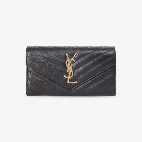 Denne Yves Saint Laurent Cassandre Wallet er en elegant og sofistikeret pung med et klassisk quiltet design og det ikoniske YSL-logo på fronten. Den aflange silhuet giver god plads til kort, sedler og små essentials, mens lynlåslukningen sikrer indholdet. En stilfuld accessory med et tidløst og raffineret udtryk.