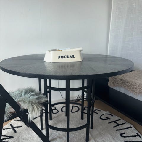 Rundt spisebord, hvidt malet.