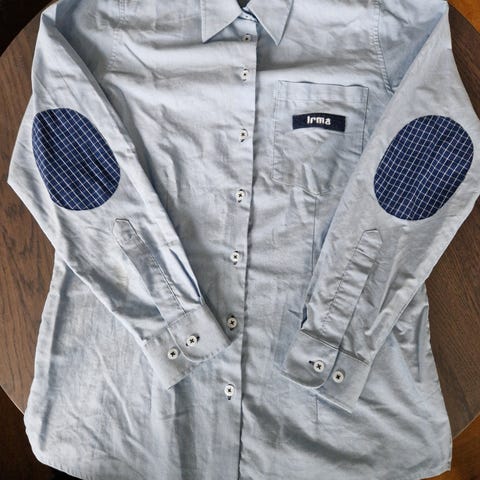 Kortærmede Irma skjorter. Lyseblå med Irma-logo, og fine detaljer.