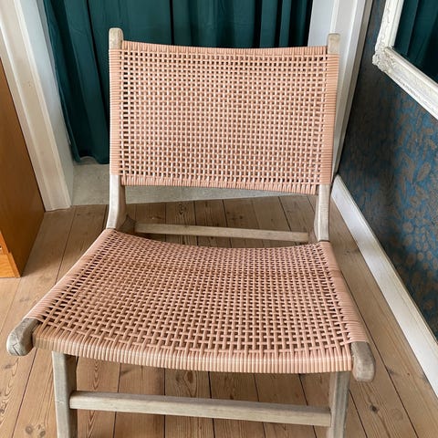 Lænestole i teaktræ til brug udendørs sælges