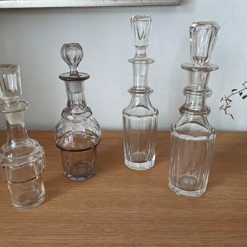 Glas, Fransk glas karaffel med drikkeglas, Den fineste, franske pepitaternede karaffel inkl. 6 drikkeglas sælges.