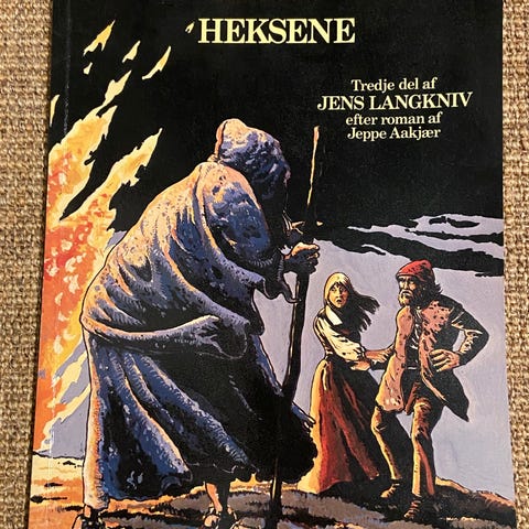 Orla Klausen Heksene tegneseriealbum. Tredje del af Jens Langkniv efter roman af Jeppe Aakjær. Trykt udgave i bog-/albumformat med illustreret forside. Velegnet til læsere af danske tegneserier og litterære bearbejdninger i tegneserieform.