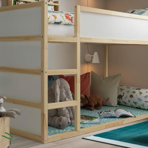Vendbar, så det både kan være en alm seng eller en højseng med plads under, vendes blot rundt imens den er samlet.
