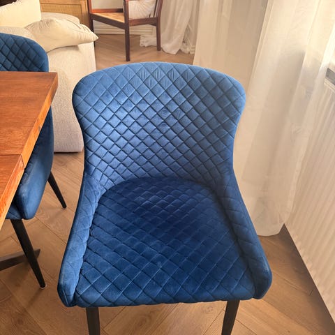 4 brugte spisebords stole med synlige tegn på at de er brugt, der er 2 som er helt nye og stadigvæk er i æske.