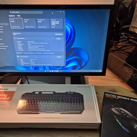 Computeren trækker fint spil som, GTA, FiiveM, Minecraft, Fortnite, CSGO og mange andre spil. Pc’en er købt fra ny i slut 2022. Og er blevet brugt siden Oktober 2023. Skærmen er købt sammen tid som Pc’en:-)
