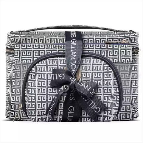 Super fin, helt ny og ubrugt toilettaske fra Gillian Jones sælges. Meget praktisk da den kan foldes ud, hænges op og skaber derved et godt overblik. Mange indvendige lommer og fine detaljer. En lille gennemsigtig check-in-bag medfølger.