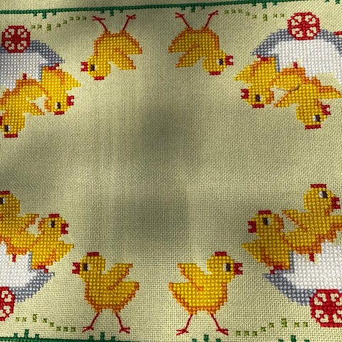 Vintage påskedug med broderi og hulmønster.