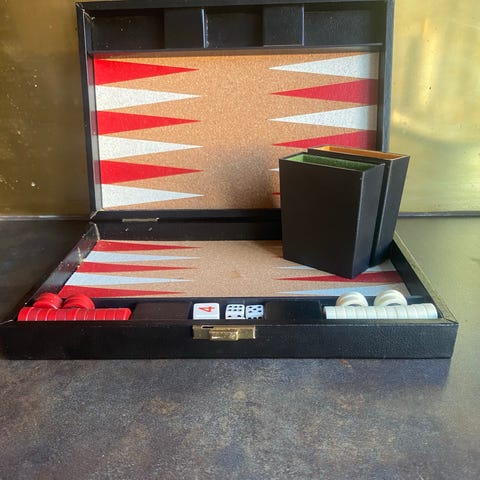 Backgammonspil kuffert sort grøn rød