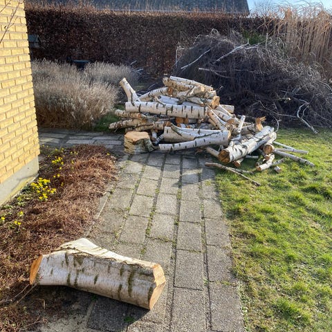 Blandet brænde bestående af forskellige typer træ i varierende længder og tykkelser. Brændet fremstår som en blanding af kløvede stykker, grene og mindre stammer. Egnet til brug i brændeovn, pejs, bålplads eller andre former for fyring, hvor uensartet brænde kan anvendes. Leveres som blandet parti som på billederne.