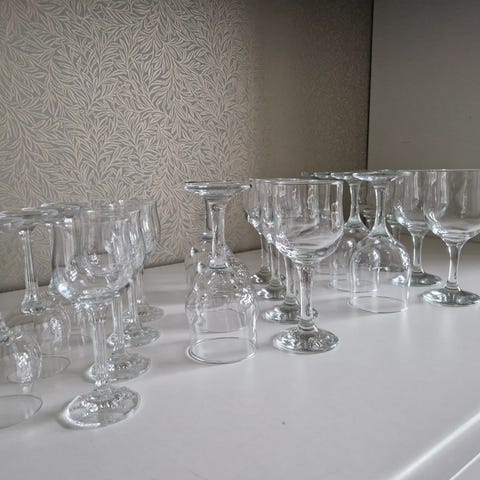 diverse håndlavede vinglas, snaps glas,