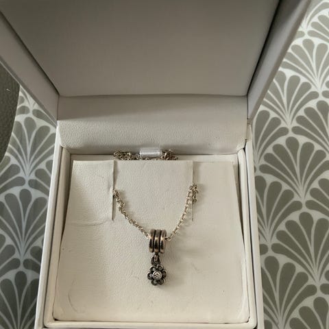 Pandora halskæde 45 cm lang med vedhæng.