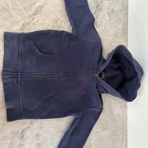 Polo Ralph Lauren hættetrøje til børn i størrelse 14/16(ca 170). Trøjen er unisex og fremstillet i bomuld. Farven er sort. Modellen har hætte og gennemgående lynlås foran samt lommer på maven. Velegnet som hverdags- og fritidstøj til større børn/teenagere.