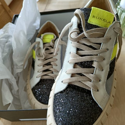 Helt nye med æske Bukela matt silver blue sneakers str 41 . Sål 25,3 cm