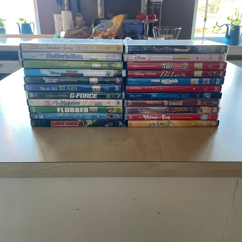 Samling af Disney og Pixar børnefilm på DVD. Pakken indeholder flere kendte tegne- og animationsfilm, herunder titler fra Toy Story-serien samt andre klassiske Disney- og Pixar-film. Velegnet til børn og familier, der ønsker en samlet pakke med forskellige børnefilm på DVD-format.