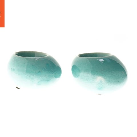 Sæt med 3 vaser i forskellige størrelser, fad, og olielampe. turkisblå. i fad men skår. brugsspor. billeder kvalitet er ikke god.