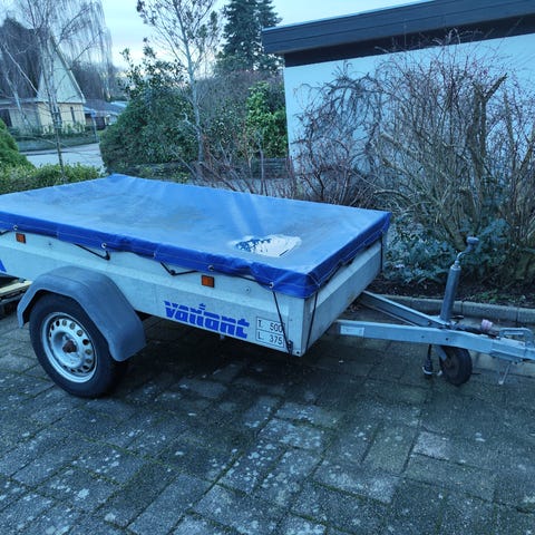 Brenderup 3150 S trailer i galvaniseret stål. 144x116 årgang 2004. Enakslet trailer med bagklap, der kan vippes ned for nem lastning og aflæsning. Udstyret med lygter, reflekser og nummerpladeholder bagtil samt støttehjul foran. Velegnet til transport af byggematerialer, haveaffald og andre mindre læs efter personbil.