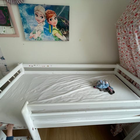 passer til madras 70x160. Denne kan medfølge hvis man ønsker. Brugt af 2 børn.