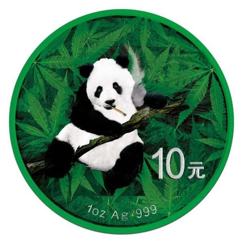 Kina Panda sølvmønt 10 yuan 2015, 1 OZ 999 sølv, 3 tilbage
