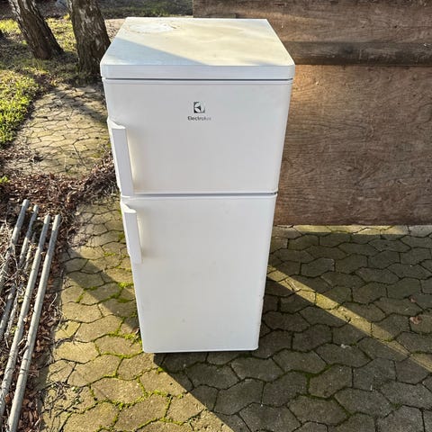 Electrolux SpacePlus køle-fryseskab i hvid. Det virker som det skal. Skabet har integreret fryseboks øverst og køleafdeling nedenunder. Indvendigt er der flere glashylder, en grøntsagsskuffe samt dørhylder til opbevaring af flasker og mindre varer.