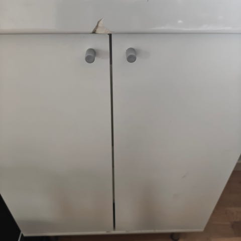 OBS: bordpladen er blevet forkortet ca. 3 cm, så bordpladen har den præcise længe af skabene, men ikke har den 1-1,5 cm. Ekstra på hver side. Denne skæring er ikke helt perfekt (så billeder).