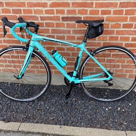 Bianchi 609 racer til unisex med 61 cm stel og 28"/700c hjul. Klassisk landevejsracer med buet styr og smalle dæk, egnet til kørsel på vej og træningsture. Cyklen har geargruppe Shimano RX 100 , 2x7 gear med dobbelt klinge foran og kassette bagpå, fælgbremser samt flaskeholder monteret på stellet. Farven er den karakteristiske Bianchi-grønne nuance med matchende styrbånd og drikkedunk. Velegnet til ryttere, der søger en større stelstørrelse og en traditionel landevejsgeometri.