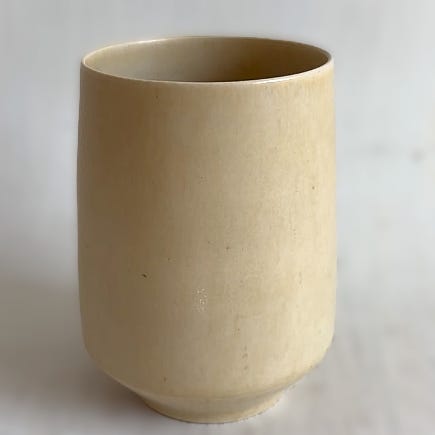 Formen er slank og cylinderformet med let afrundet bund og smal åbning foroven.