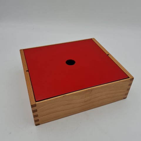 Produktet er en kasse med en træramme og en orange topplade. Den har en cirkulær åbning i midten. Træet ser slidstærkt ud.,Afhentes i:,Røde Kors Holstebro (661),Bemærk at mail, chat og beskeder ikke besvares, og varen skal købes på knappen "Gå til varen"