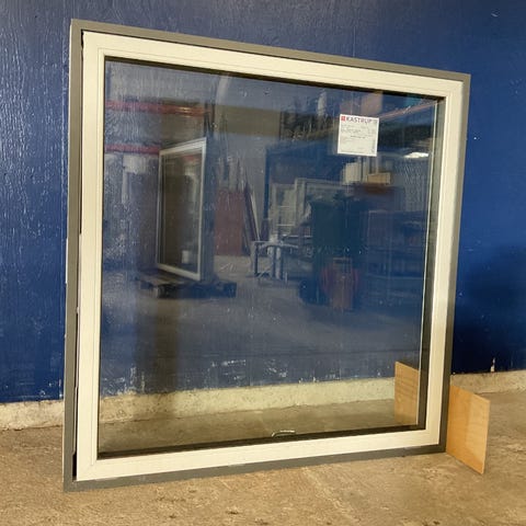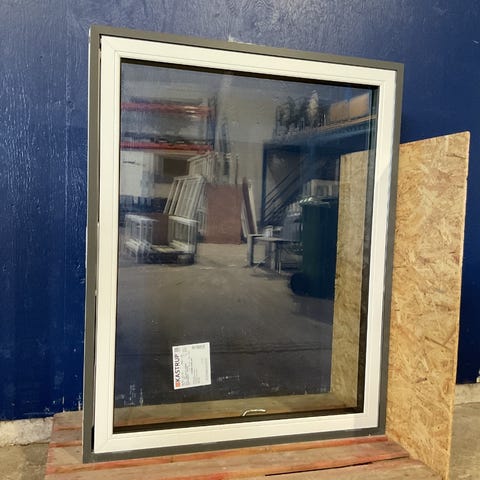 Ubrugt Kastrup Vindue, Alu/træ, 3 lag glas, topstyret, udluftning, vinduet har ret mange ridser på aluminiumet på toppen, mål: Varenummer: 1830