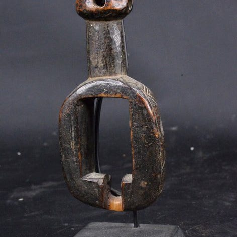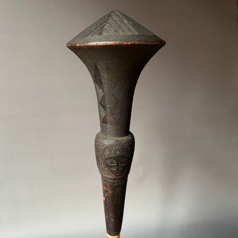 Lang Baule-kniv fra Elfenbenskysten, provenance privat samling, 51 cm høj, i god stand, original. Klik på den blå "gå til varen" knap, for at købe eller byde på denne vare. Den samlede pris vil blive vist inden du afgiver dit bud.