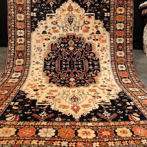 Der tilbydes et håndknyttet orientalsk tæppe fra Isfahan.