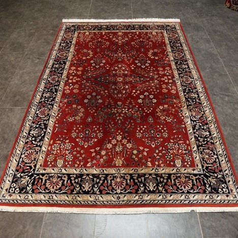 Fordyb dig i den tidløse elegance af et antikt Isfahan-orientteppe — håndknyttet med den højeste kunnen, det fortæller historier fra svundne tider og giver dit hjem et lille strejf af orientalsk luksus. Dette mesterværk af håndværk fascinerer ikke kun gennem sin betagende farvepalette og detaljerede mønstre, men også gennem den kulturelle dybde, der er vævet ind i hver knude.