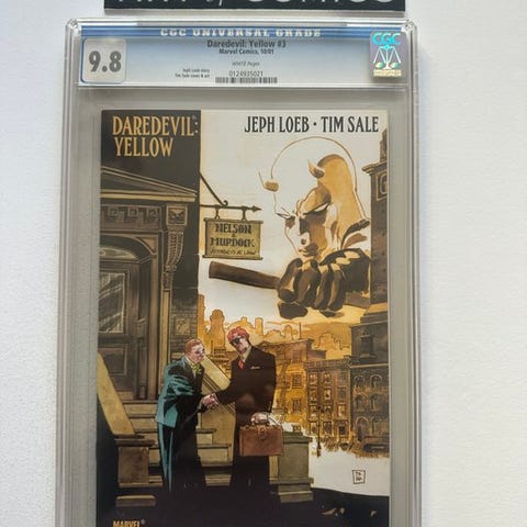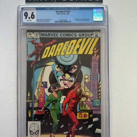 Marvel Daredevil The Man Without Fear, første udgave, CGC 9.8, Mint tilstand, hæftet binding, nummer 4 med embossed rød foil-cover, kunstnerne Frank Miller, John Romita Jr. og Al Williamson, udgivet i 1994. Klik på den blå "gå til varen" knap, for at købe eller byde på denne vare. Den samlede pris vil blive vist inden du afgiver dit bud.